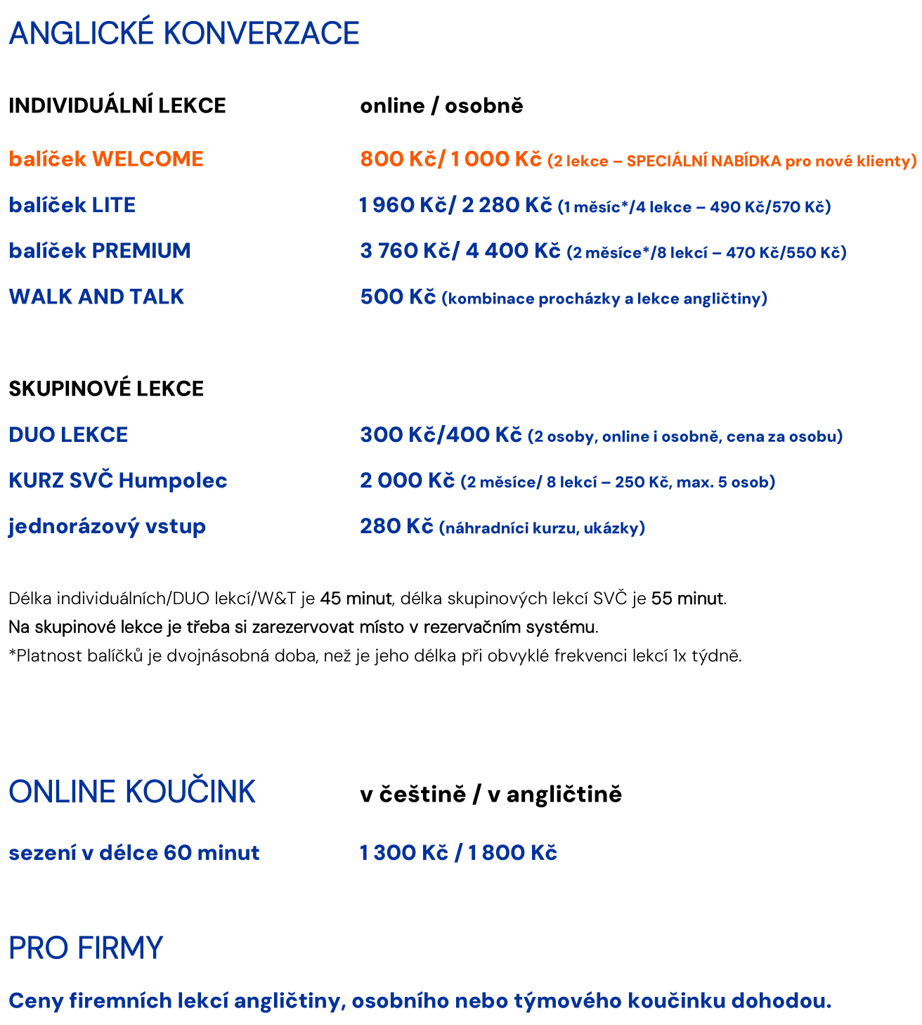 Hodnotná investice do vzdělání... CENÍK SLUŽEB Ceník PDF pojďme se spojit... úvodní konzultace ZDARMA rezervovat